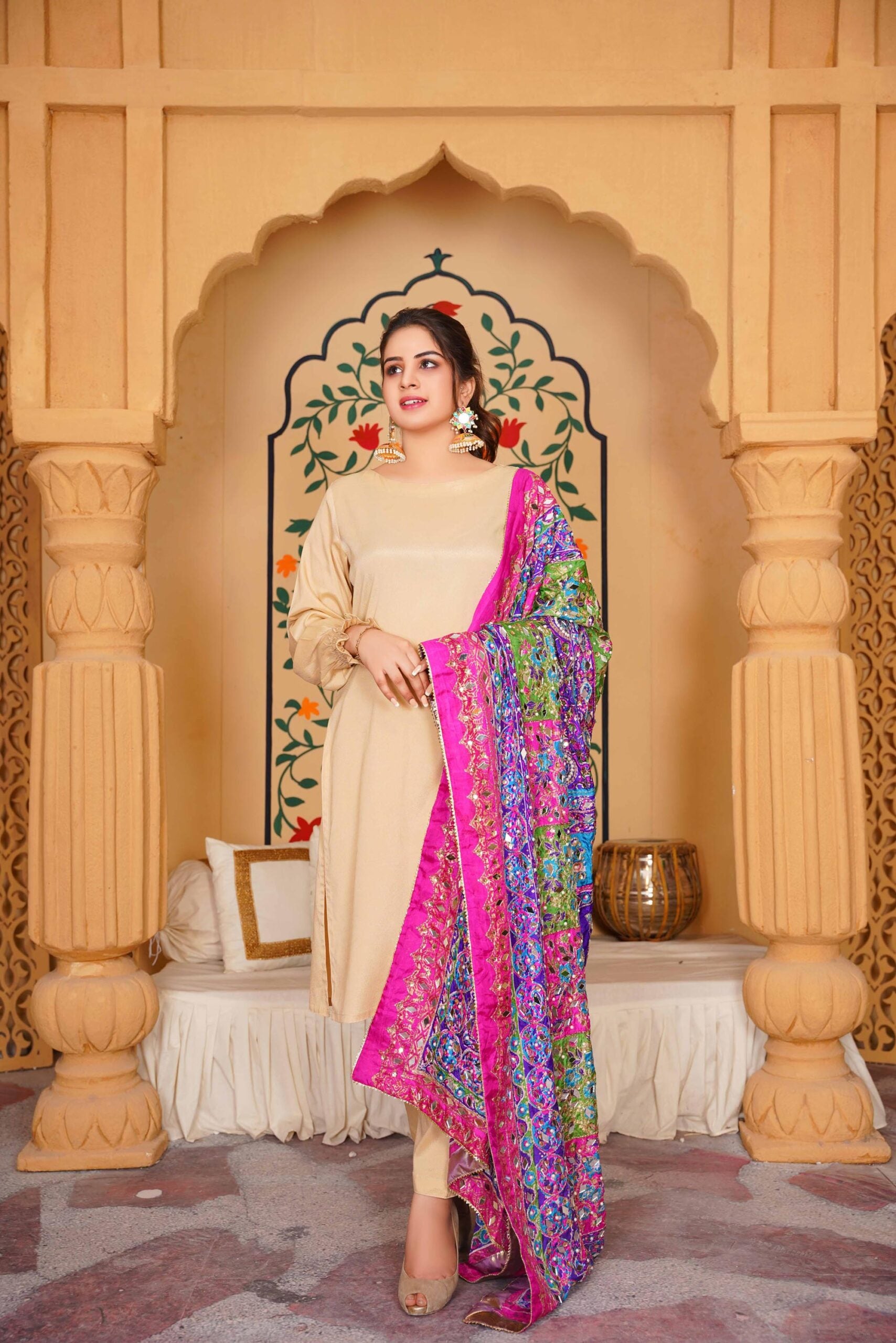 The Chand Begum silk shawl is a stylish accessory for all seasons. Crafted in pure medium silk, the shawl offers a luxurious look and feel. Its multi color block printing adds an eye-catching pattern to this classic garment. Perfect for bringing a touch of elegance to any wardrobe.