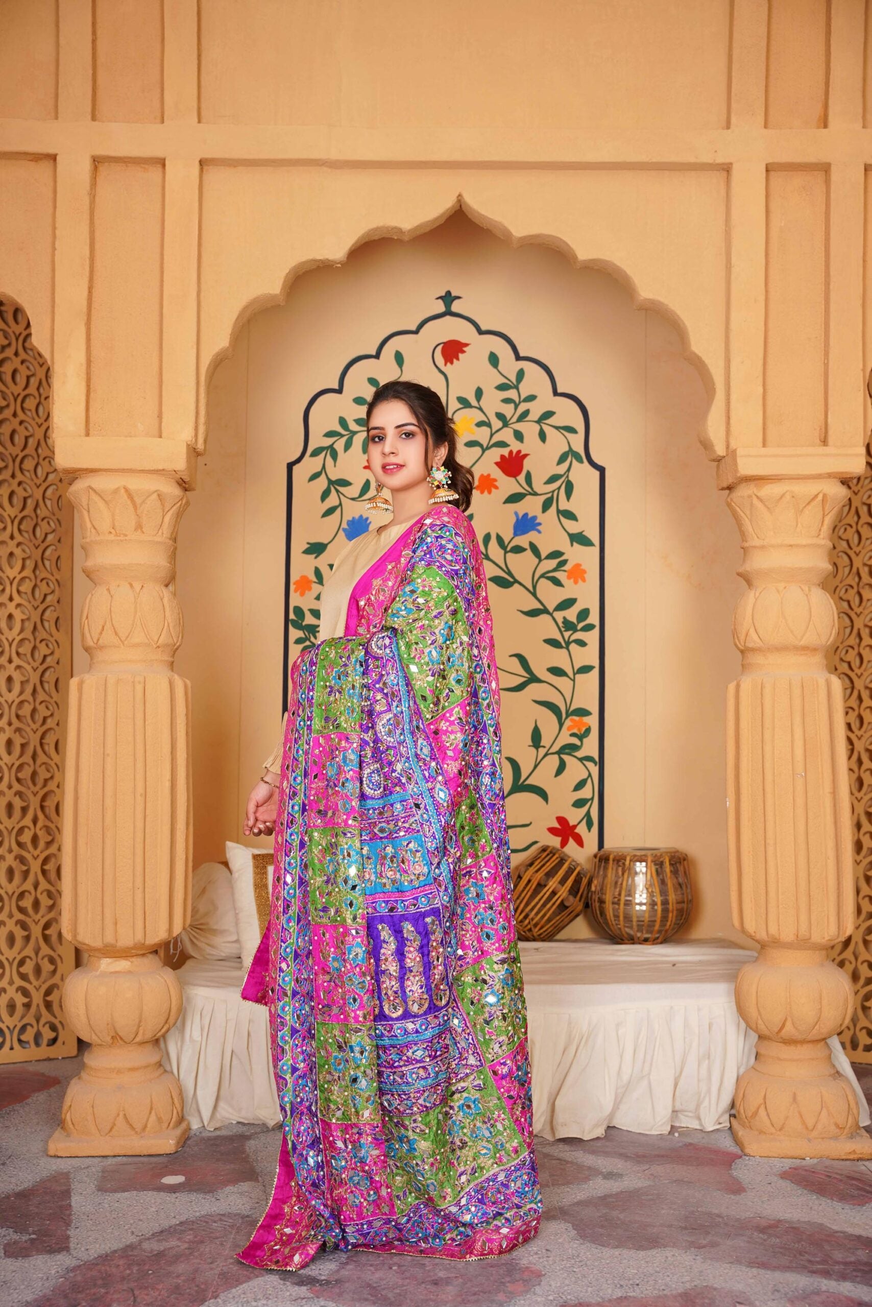 The Chand Begum silk shawl is a stylish accessory for all seasons. Crafted in pure medium silk, the shawl offers a luxurious look and feel. Its multi color block printing adds an eye-catching pattern to this classic garment. Perfect for bringing a touch of elegance to any wardrobe.